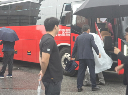 한 분, 한 분 질서 유지를 하시면서 버스에 오르신다.