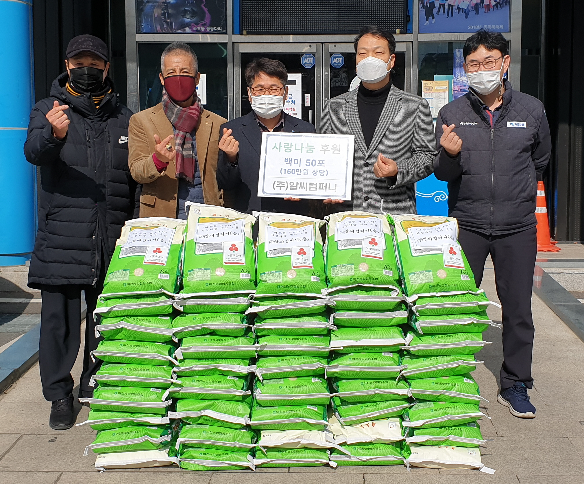 이날 ㈜알씨컴퍼니는 160만 원 상당의 백미(10kg) 50포를 후원했으며, 후원물품은 소외계층 어르신과 저소득 가정에 지원될 예정이다.
