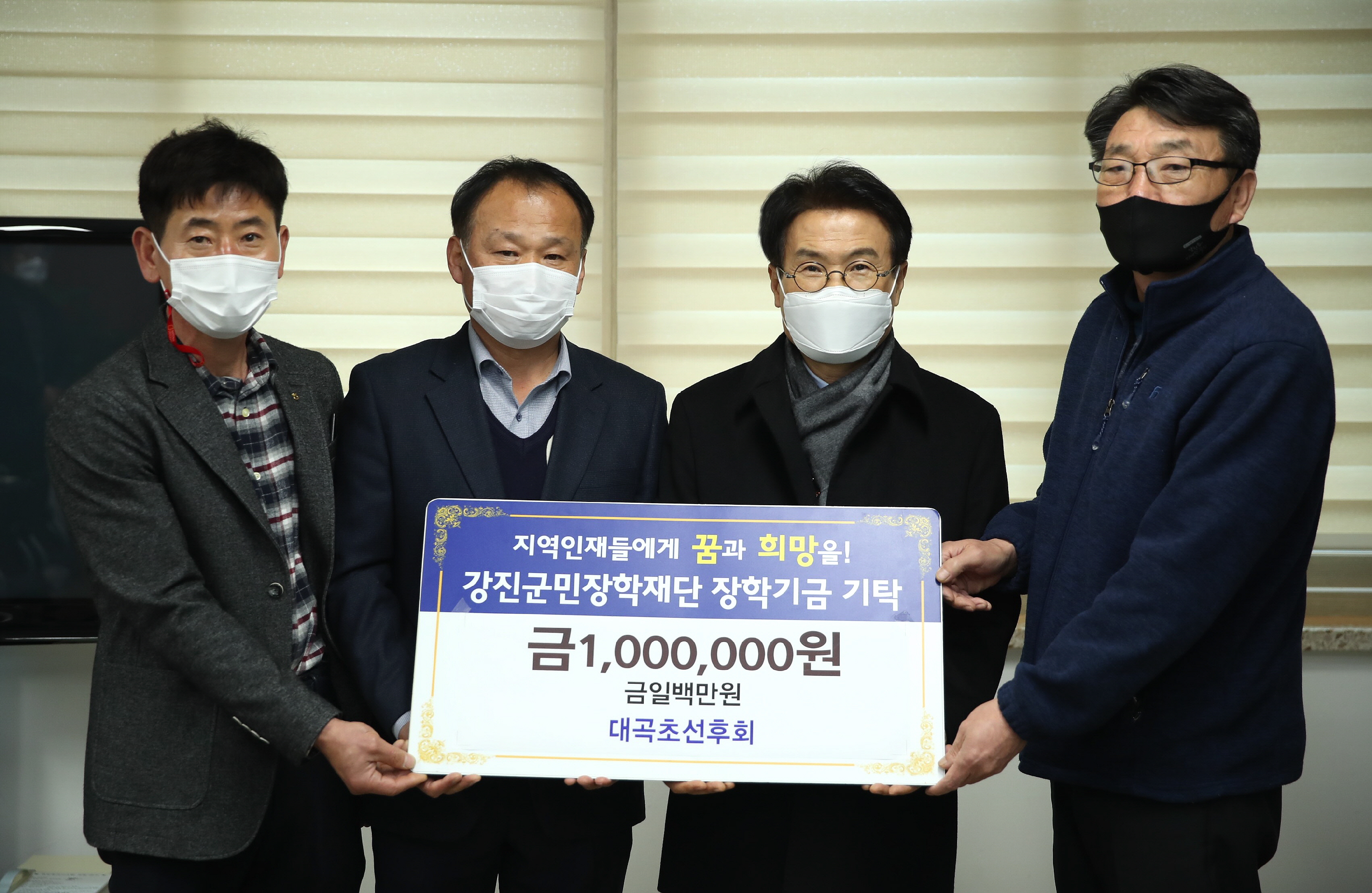지난 18일 대곡초선후회(회장 마종군)가 100만 원의 장학금을 강진군민장학재단(이사장 이승옥)에 쾌척했다.