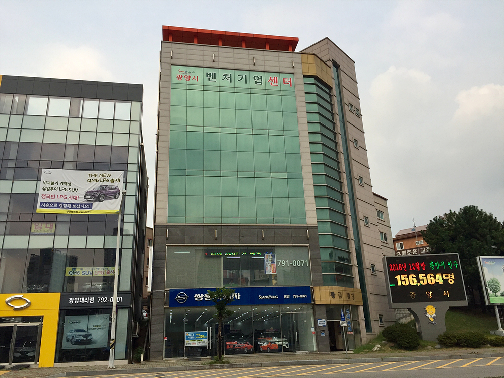 컨부두 사거리 황금빌딩 5층에 위치한 광양시 벤처기업센터는 창업 인큐베이터로써 중요한 역할을 담당하고 있으며, 창업 문화 확산과 일자리 창출을 선도할 지역의 유망한 중소벤처기업을 발굴 육성하고 있다.