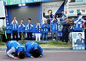 ‘민주당 압도적 승리’ 총력 결의대회…지지자 등 구름군중김종민 민주당 최고위원·이낙연 前총리 등 잇단 지원연설 행복수당 50만원·청년창업 220만원·출산장려금 500만원 이상철 곡…
