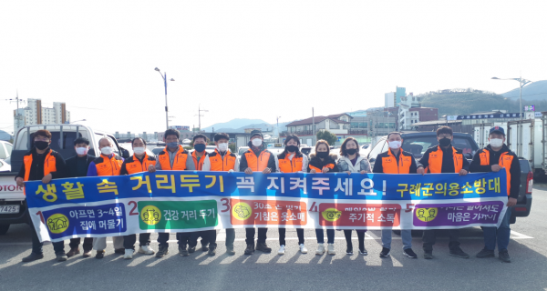 구례군 전문의용소방대, 코로나19 사회적 거리두기 캠페인 실시