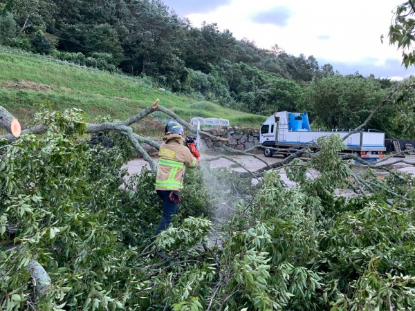 순천소방서 저전119안전센터, 태풍 '마이삭' 피해 고목 제거실시