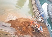 토사와 레미콘 교반 타설, 지반 안정화를 위한 보강작업바닷물 유입차단, 추가 붕괴위험 해소 여수시는 웅천 흙막이벽 붕괴사고 현장에서 밤샘 복구작업을 실시해 바닷물 유입과 추가 붕괴…
