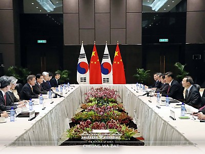 한․중 정상회담 결과 관련 김의겸 대변인 브리핑 2018-11-17문재인 대통령은 조금 전 오후 7시20분부터 8시까지 40분 동안 시진핑 중국 국가주석과 정상회담을 가졌습니다.가장 먼저 여러분들의 관심이 있는 한…