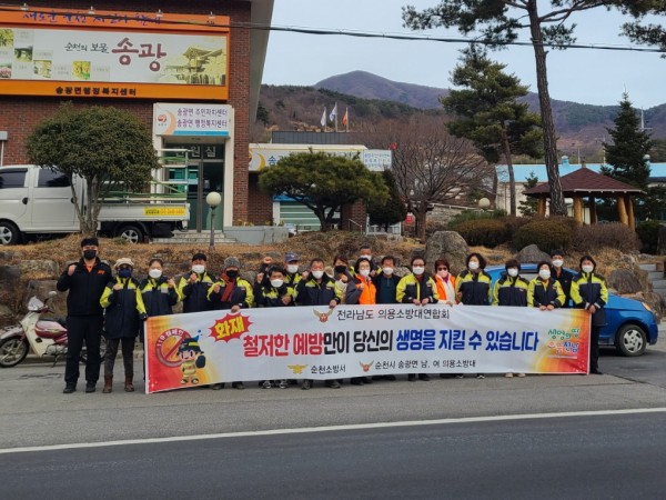 송광면 의용소방대, 설 명절 특별경계근무와 코로나19 대응 캠페인 펼쳐
