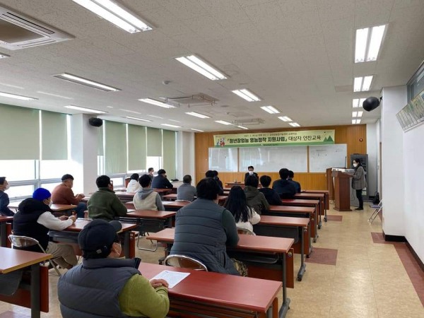 이번 교육은 청년 창업형 후계농업 경영인 25명이 참여하였으며, 전라남도농업기술원 김희열 과장을 강사로 초빙해 “청년농업인 정책 및 청년농업인의 역할” 이라는 주제로 청년기본법, 청년농업인 지원사업 등에 대한 강의를 실시했다.